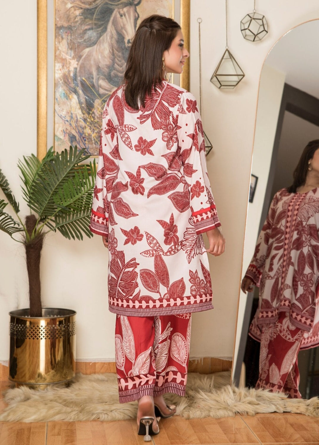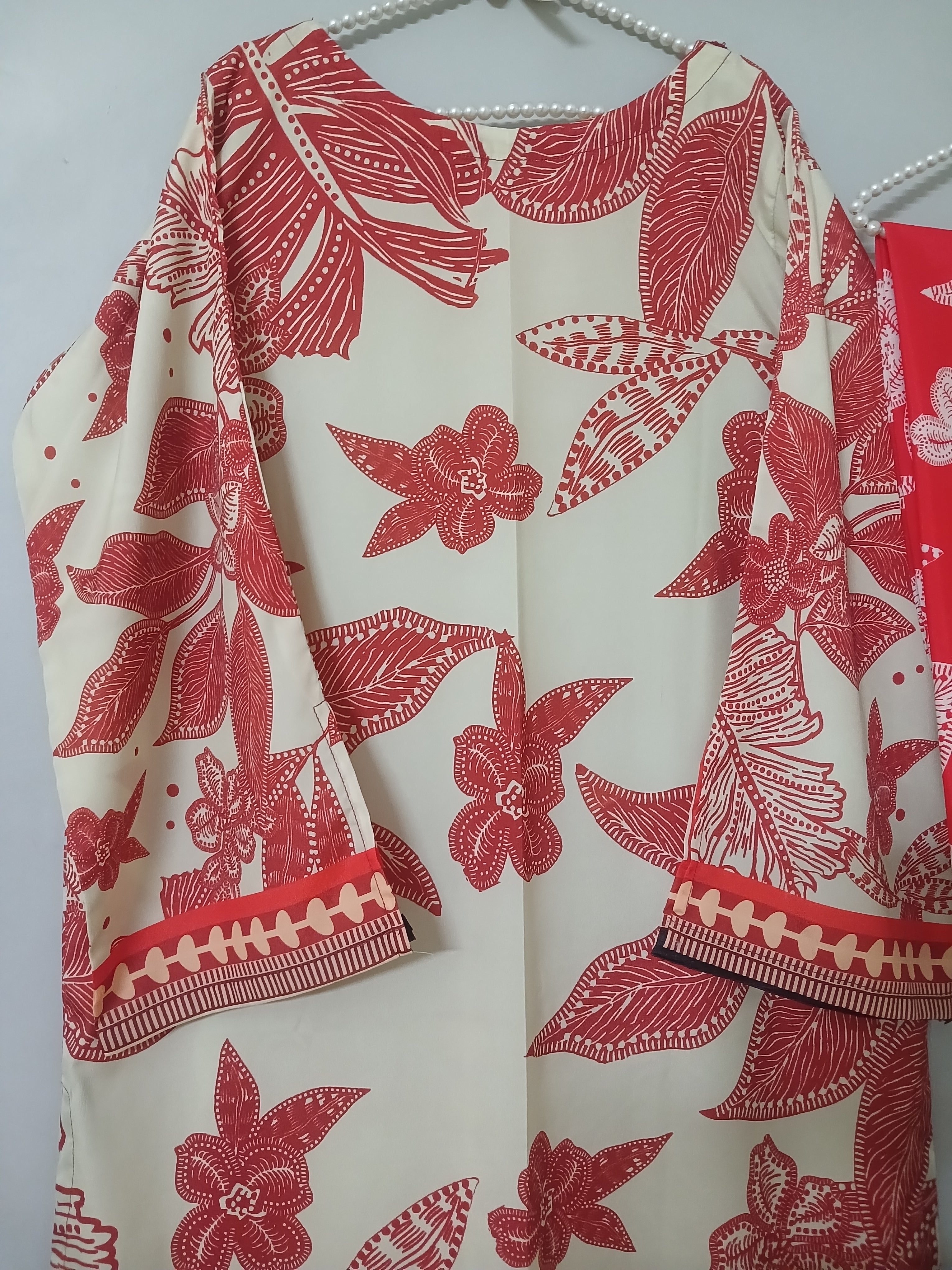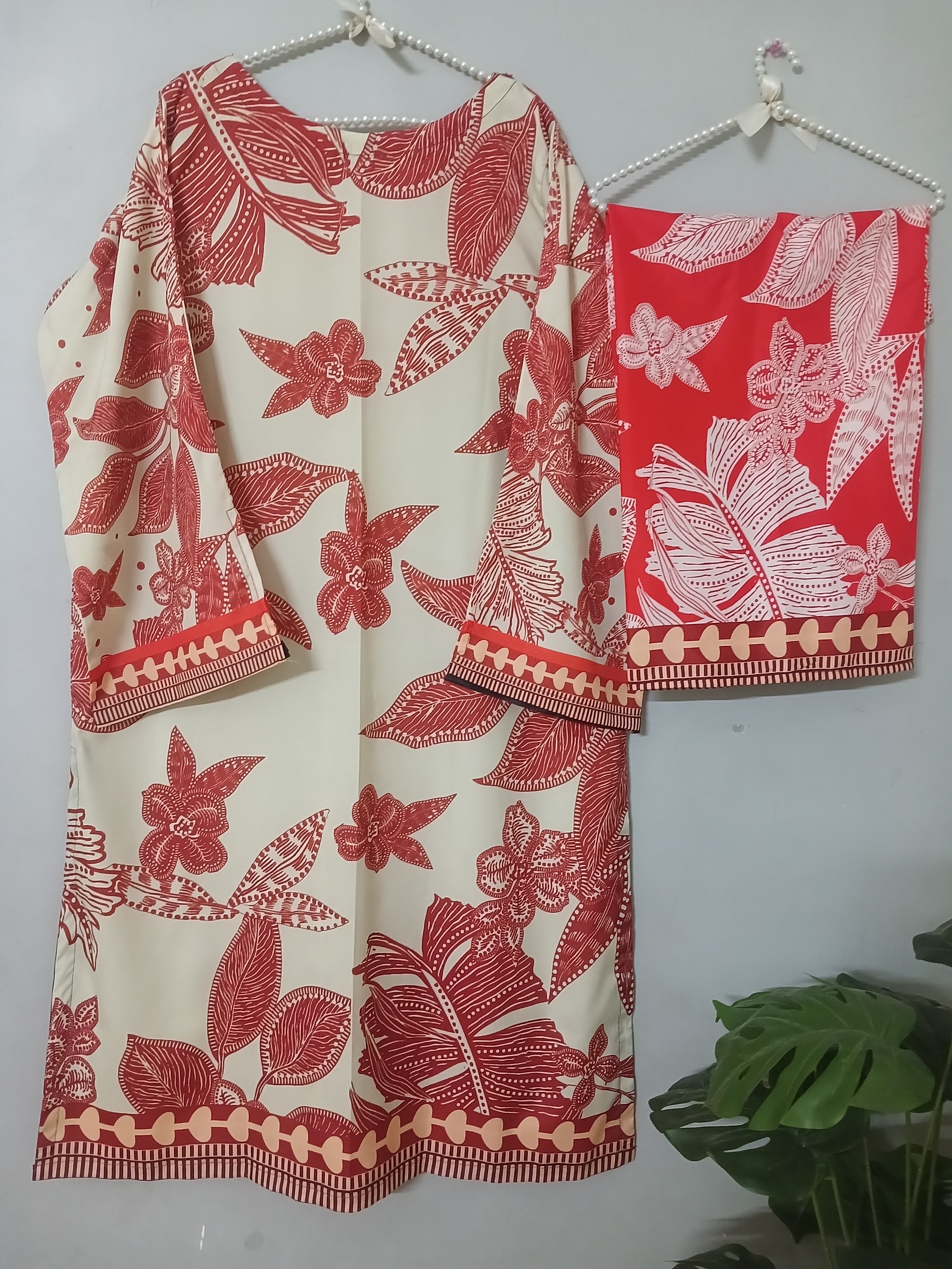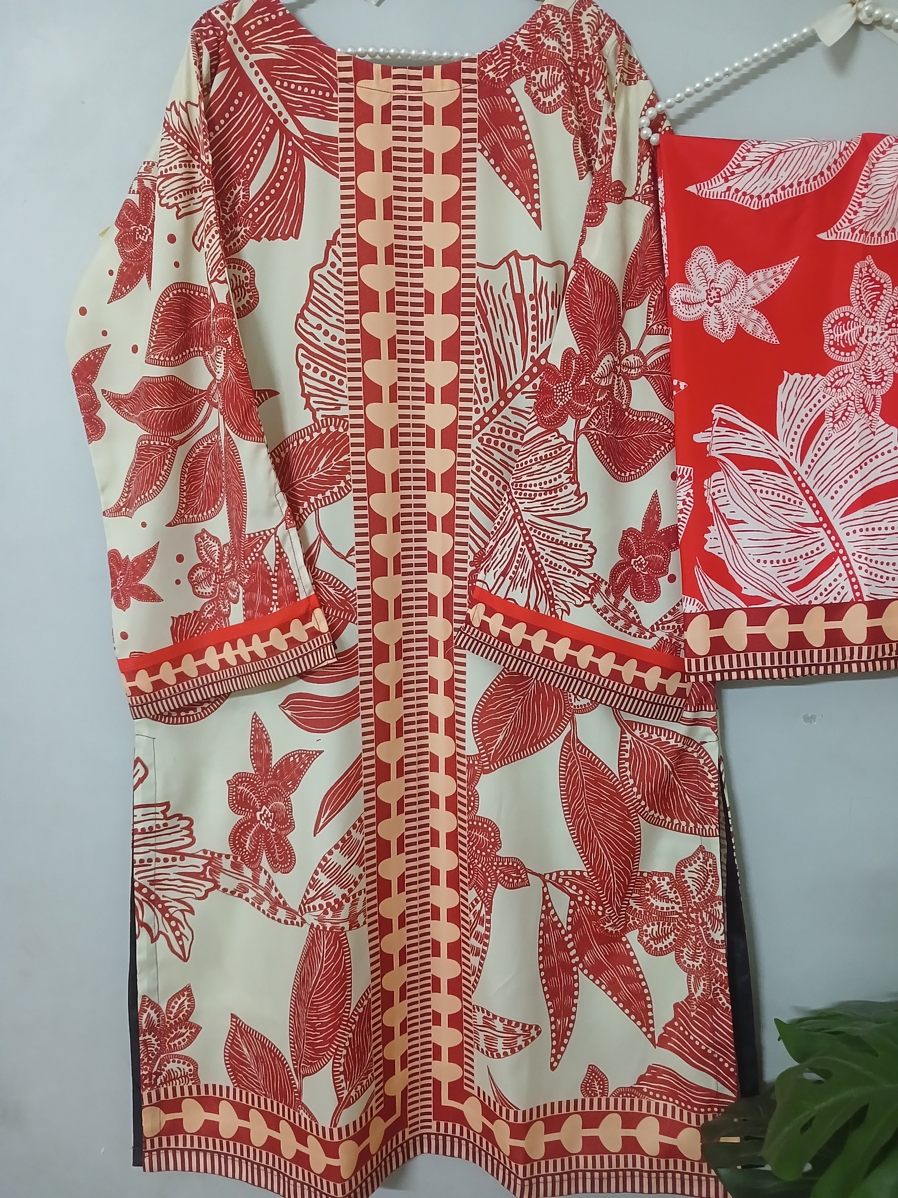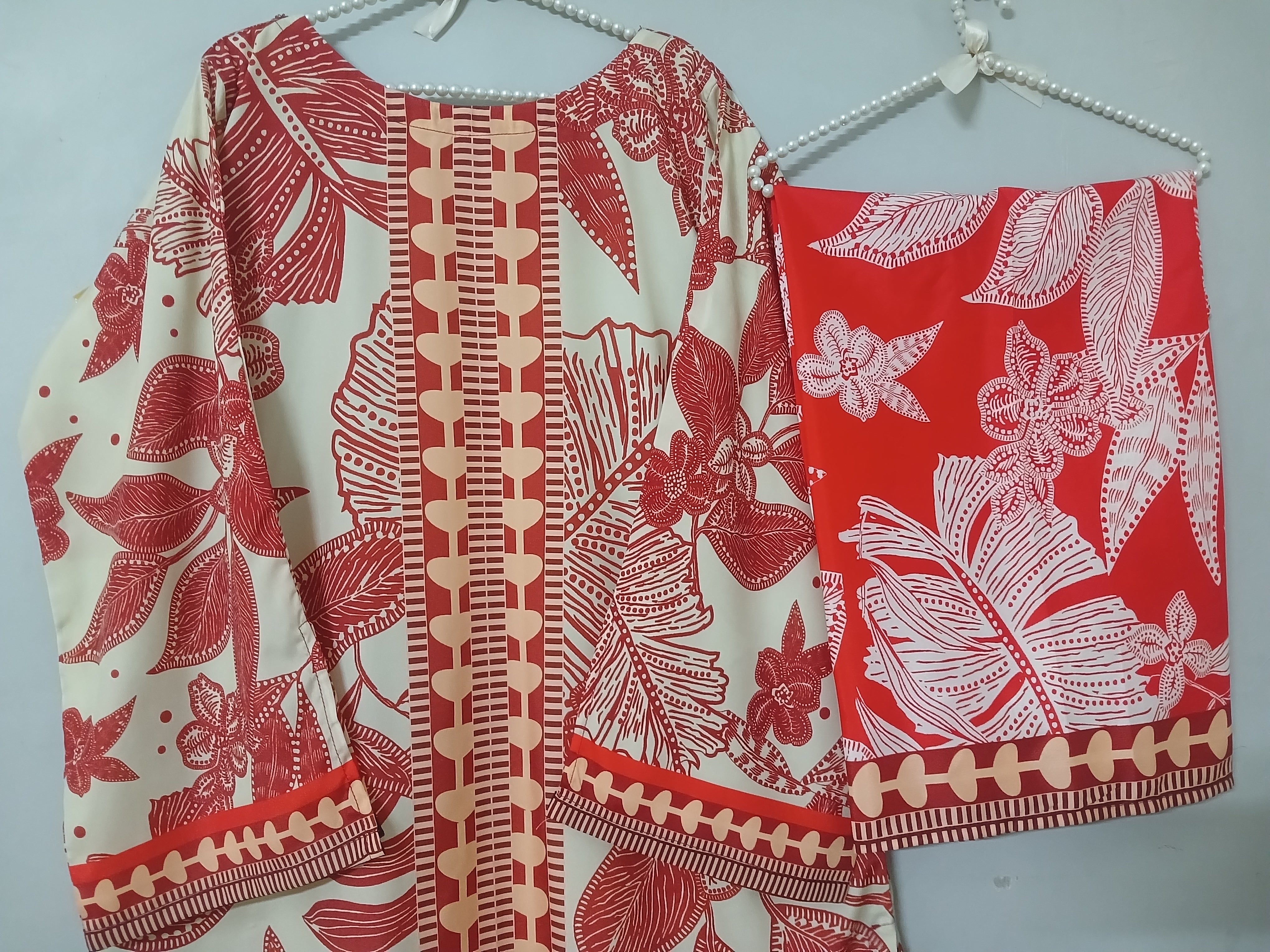 2 piece printed ( stiched) . Fabric :Grip silk Shirt standard size  Length 45  Chest 20 21...