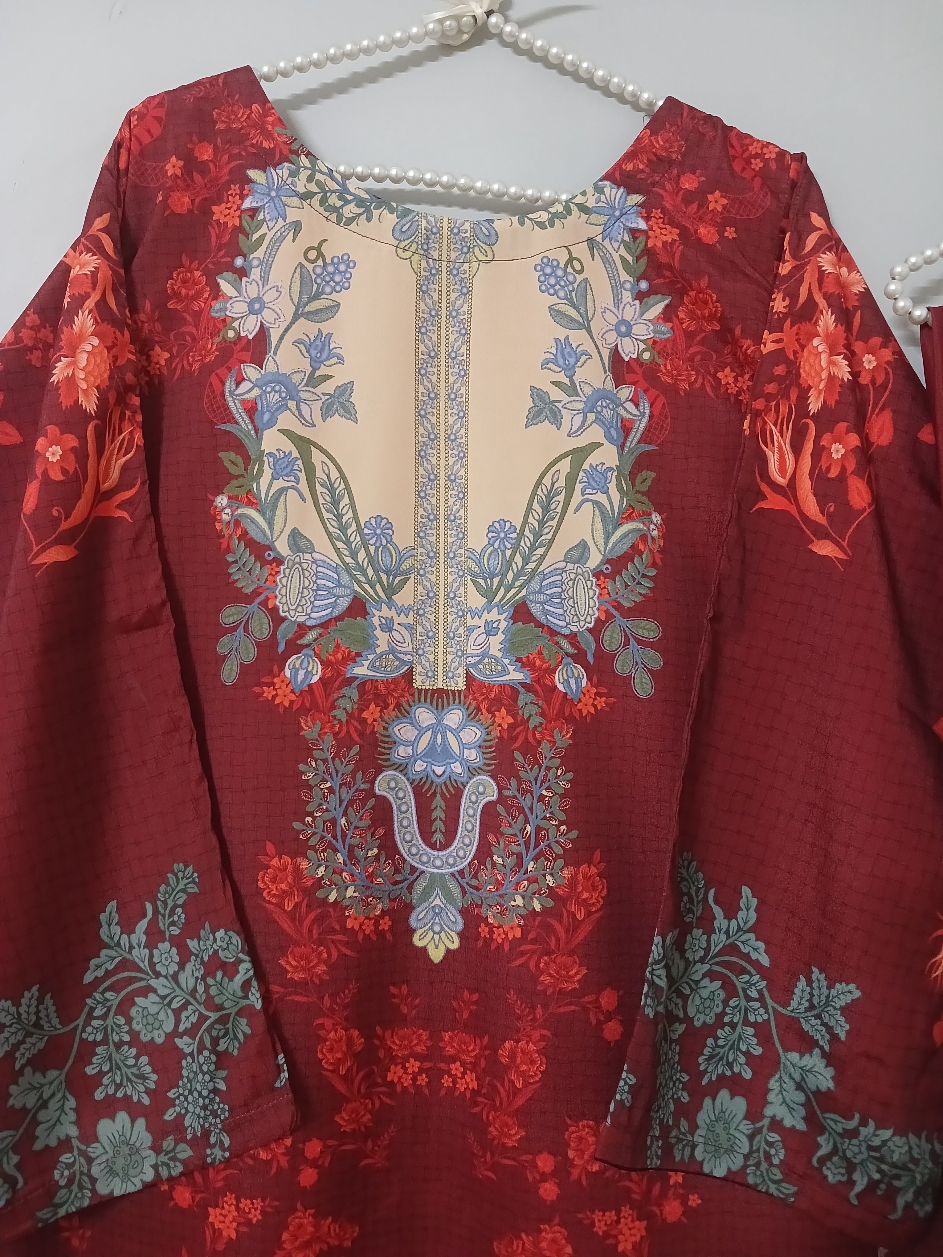 2 piece printed ( stiched) Fabric :Grip silk Shirt standard size  Length 45  Chest 20 21 to...