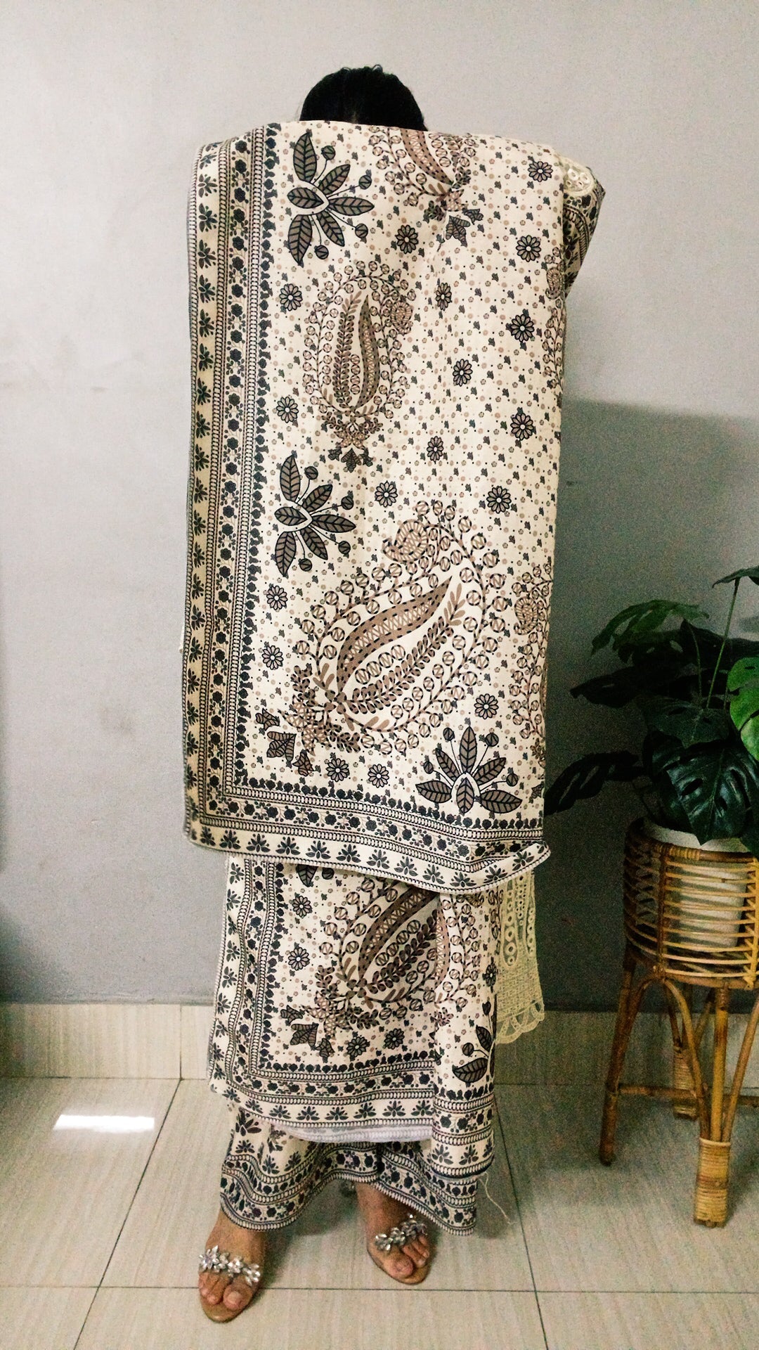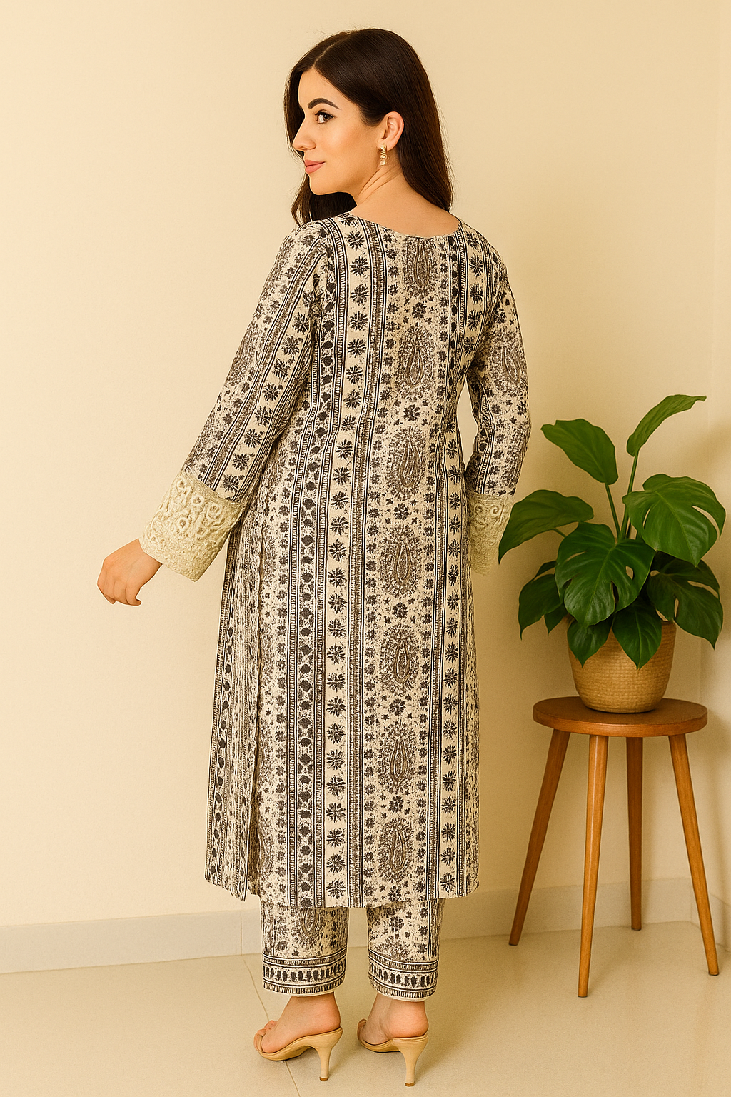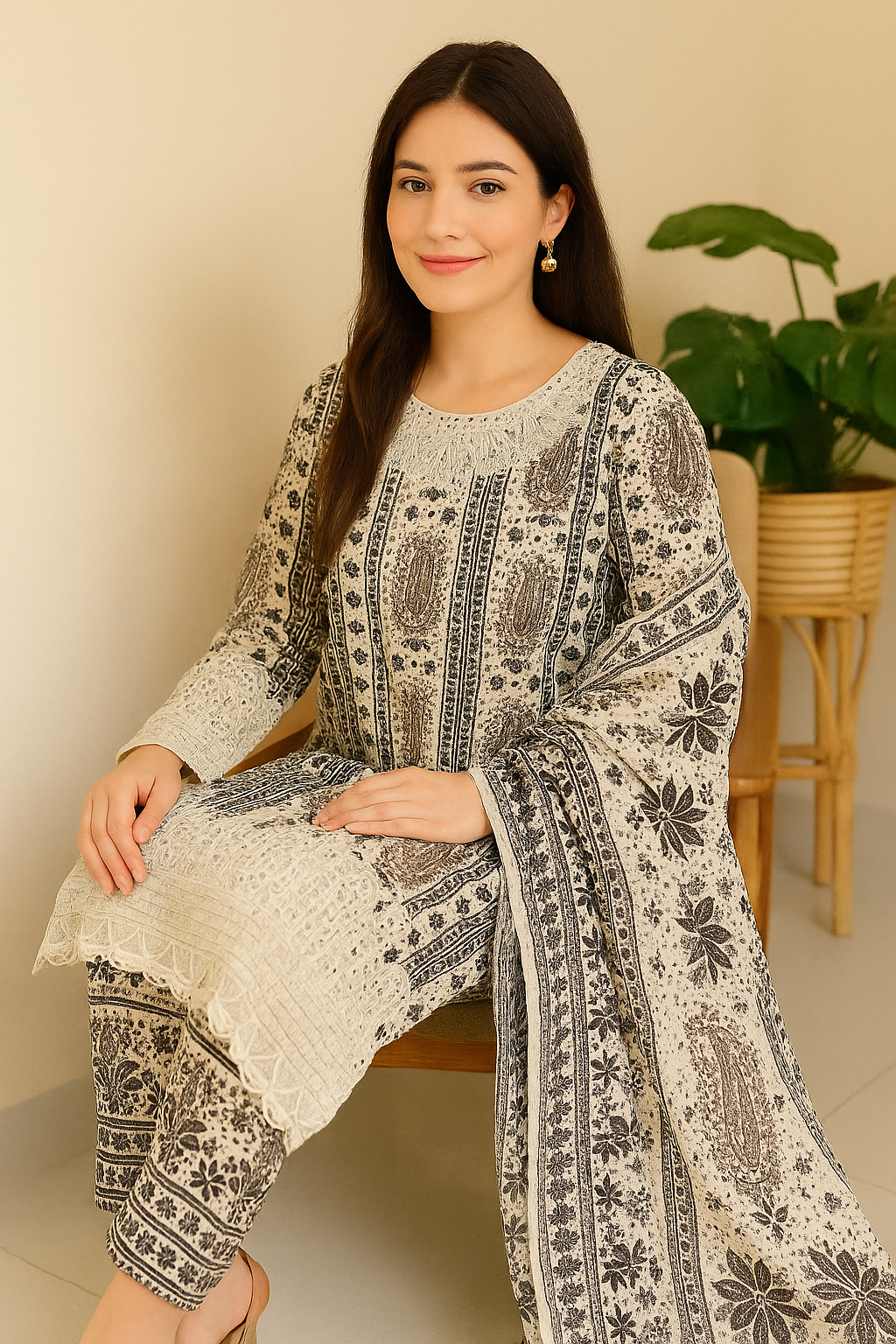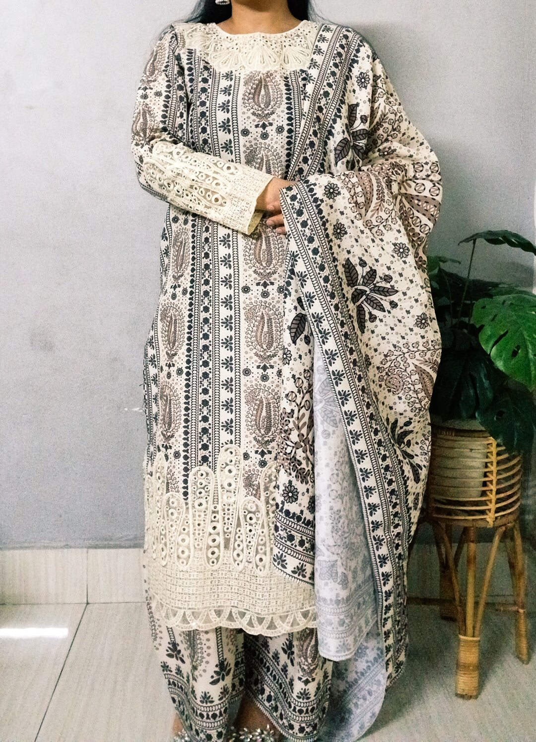 3 piece stiched dress Effortless elegance in corduroy ✨ Soft beige hues, detailed embroidery, and timeless comfort...